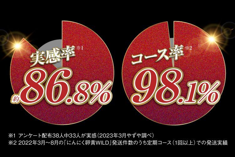 『にんにく卵黄WILD』の実感率は驚異の86.8%定期コース率はなんと98.1%