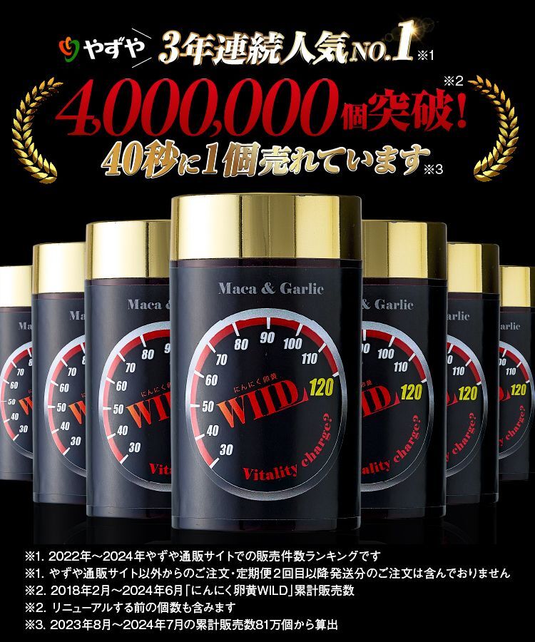 ※2 2018年2月~2024年6月「にんにく卵黄WILD」累計販売数 ※2 リニューアルする前の個数も含みます